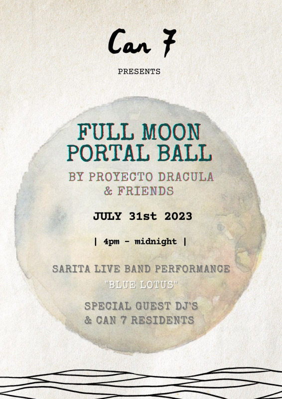 Proyecto Dracula & Friends invite you to the isle of Formentera for Portals On The Sand happening July 28- Aug 1, 2023. A group of talented artists, inspired thinkers, poets, healers, musicians, astronomers, synchronized swimmers, entrepreneurs, moonbathers, thespians and more—are gathering as an ensemble to experiment, connect, and create on the sand. Our headquarters is Can7, an artist residency/creative society on an undeveloped stretch of Playa Mitjorn beach, a UNESCO heritage site that’s perfect for swimming, connecting with nature, and relaxation. The Happening is meant as an immersive, participatory experience. You too are an artist, which is what makes this gathering particularly delightful and different from an art fair, a festival, or a party. Programming will include theater, DJ’s, live music, blue lotus sail boat cruise, cave sound journey, stargazing, improvisational fun & games, and who knows what else. All you need to bring is an open mind